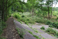 Der teilweise noch begehbare Betonkragen der Strecke (Februar 2024)