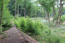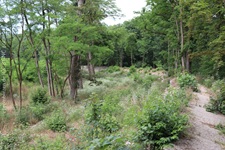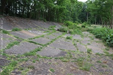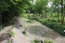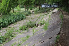 j![]() | Das Ende nach einer Dekade… Als der Opel-Ring gebaut wurde, befand man sich bereits am Beginn einer Epoche rasanter Entwicklung in der Automobiltechnologie. Für die Opel-Rennbahn waren die Fahrzeuge nach wenigen Jahren einfach zu schnell und die zwischenzeitlich in Betrieb genommene Konkurrenz Avus (1921) und Nürburgring (1927) attraktiver und auch für schnellere Fahrzeuge geeignet. Anfang der 1930er war dann Schluss mit dem Rennbetrieb und der Niedergang des Ovals besiegelt. Nach Ende des zweiten Weltkrieges erwachte die Rennstrecke nochmal kurz in ihrer ursprünglichen Bestimmung. Bis 1948 wurden vom Opel Army-Repair-Shop wieder instandgesetzte Fahrzeuge der US Army auf dem Opel-Ring Probe gefahren. 1949 endete der Pachtvertrag mit der Stadt Mainz (das Areal ist seit einem Vertrag von 1909 Eigentum der Stadt Mainz) und somit auch die Geschichte der Opel-Rennbahn für immer. Es begann die Renaturierung des Geländes und die gezielte Aufforstung im Dienst des Trinkwasserschutzes. Hierzu wurde der bereits in weiten Teilen marode Belag der Strecke großräumig aufgebrochen. Der Bereich rechts und links neben der Besucherplattform lässt die einstigen Dimension der Rennbahn nur noch erahnen. |