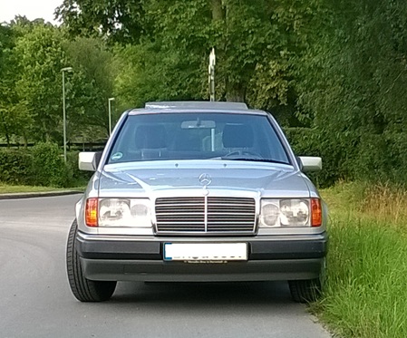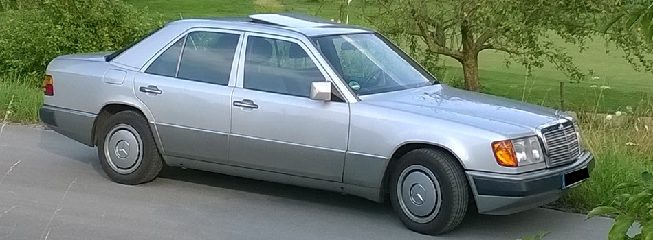 Natürlich wieder ein Mercedes und das mit den damals für mich wichtigen Annehmlichkeiten wie Automatik, Schiebedach und Mittelarmlehne. Es war das typische Rentnerfahrzeug mit geringer Laufleistung (37.500 km). Ein Mercedes-Benz 230 E W124 Serie 2 (Mopf 1), Erstzulassung 08/1990.
