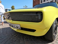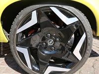 Optisch setzt der Manta GSe auf das neue Opel-Gesicht. Stand der Manta A schon für den Opel-„Vizor“ Pate, so trägt der ElektroMOD nun über die gesamte Fahrzeugbreite selbst den Opel Pixel-Vizor. Der neongelbe Lack korrespondiert kontrastreich mit der charakteristischen schwarze Motorhaube. In den Radhäusern stecken jetzt speziell designte und von Ronal gefertigte 17-Zoll-Aluminiumräder mit Reifen der Dimensionen 195/40 R 17 an der Vorder- und 205/40 R 17 an der Hinterachse.