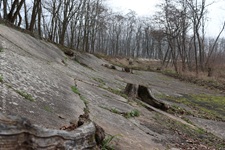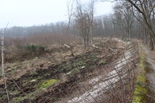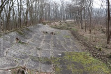 j![]() | Das Ende nach einer Dekade… Als der Opel-Ring gebaut wurde, befand man sich bereits am Beginn einer Epoche rasanter Entwicklung in der Automobiltechnologie. Für die Opel-Rennbahn waren die Fahrzeuge nach wenigen Jahren einfach zu schnell und die zwischenzeitlich in Betrieb genommene Konkurrenz Avus (1921) und Nürburgring (1927) attraktiver und auch für schnellere Fahrzeuge geeignet. Anfang der 1930er war dann Schluss mit dem Rennbetrieb und der Niedergang des Ovals besiegelt. Nach Ende des zweiten Weltkrieges erwachte die Rennstrecke nochmal kurz in ihrer ursprünglichen Bestimmung. Bis 1948 wurden vom Opel Army-Repair-Shop wieder instandgesetzte Fahrzeuge der US Army auf dem Opel-Ring Probe gefahren. 1949 endete der Pachtvertrag mit der Stadt Mainz (das Areal ist seit einem Vertrag von 1909 Eigentum der Stadt Mainz) und somit auch die Geschichte der Opel-Rennbahn für immer. Es begann die Renaturierung des Geländes und die gezielte Aufforstung im Dienst des Trinkwasserschutzes. Hierzu wurde der bereits in weiten Teilen marode Belag der Strecke großräumig aufgebrochen. Der Bereich rechts und links neben der Besucherplattform lässt die einstigen Dimension der Rennbahn nur noch erahnen. |